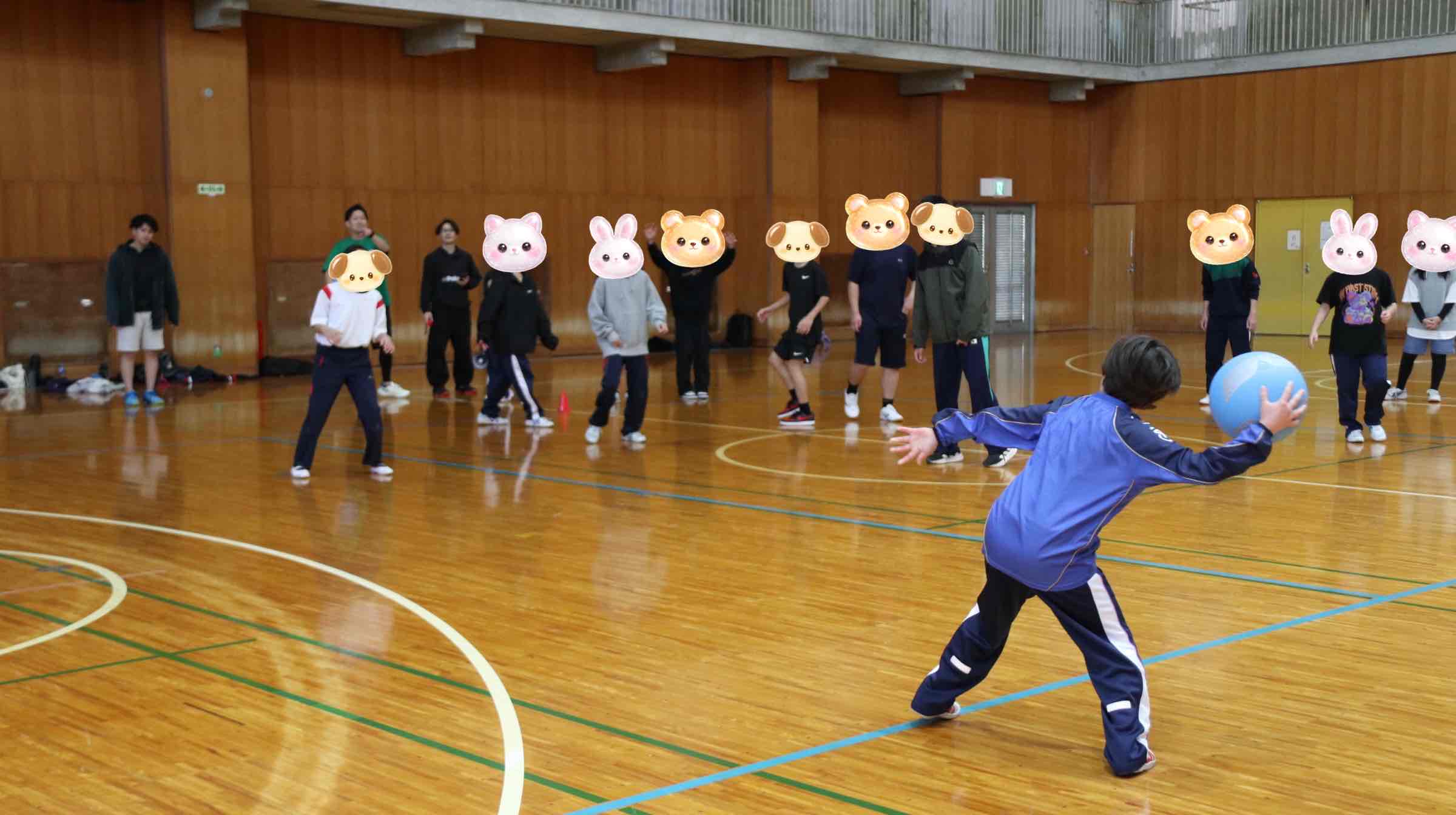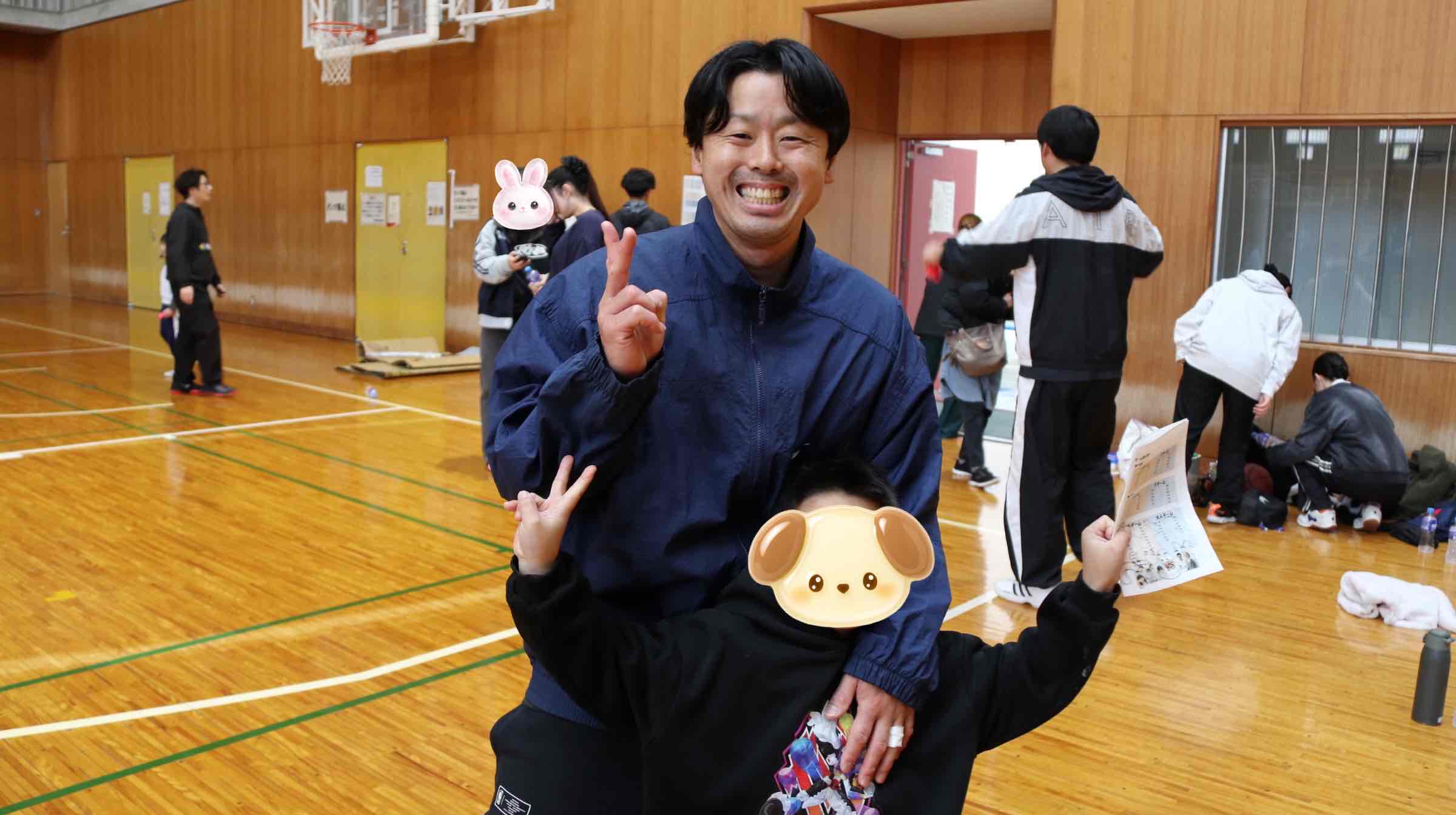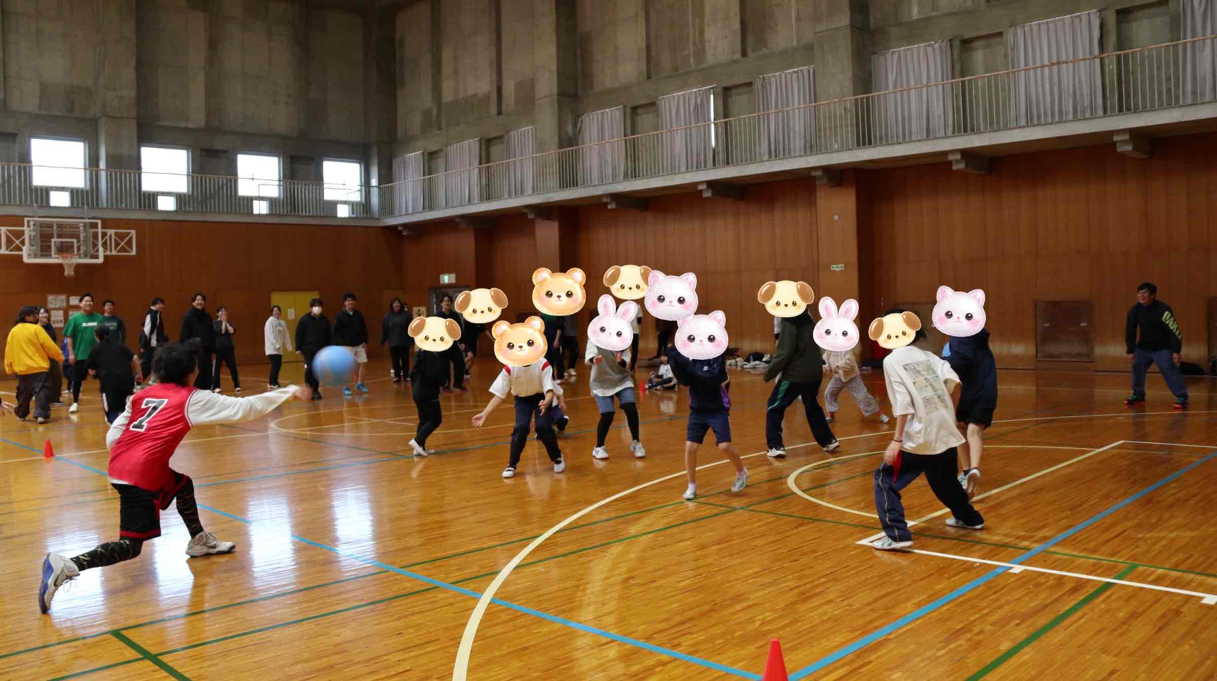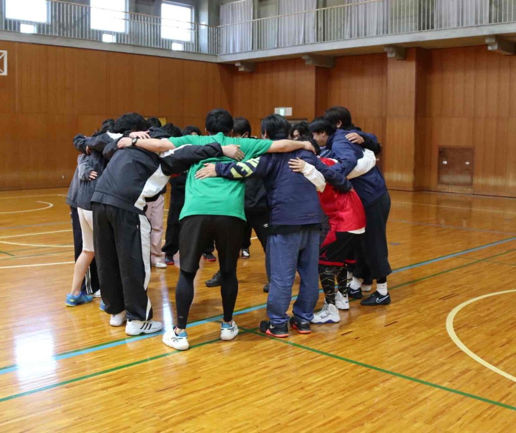 競技の内容はバスケットボール・バドミントン・ドッヂボール、事前に決めていたチームに分かれ円陣を組んで『絶対勝つぞー!』と気合は十分!