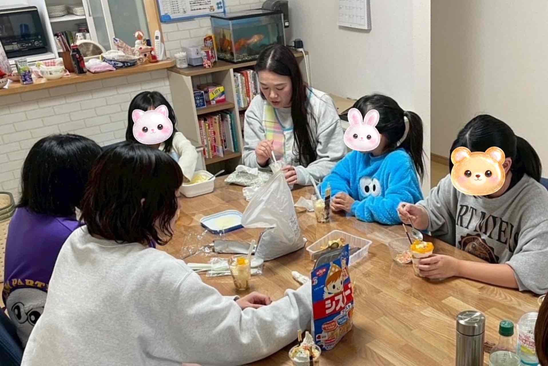 ご飯を食べた後はすずらんホームに戻り、みんなで手作りパフェを作りました。